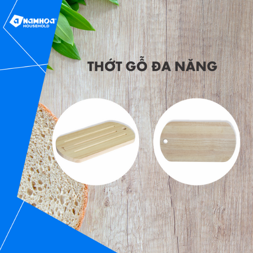 Thớt đa năng được thiết kế để sử dụng luân phiên 2 mặt của sản phẩm: 1 mặt dùng để cắt thái thực phẩm đã nấu chín; mặt còn lại dùng riêng để cắt bánh mì.