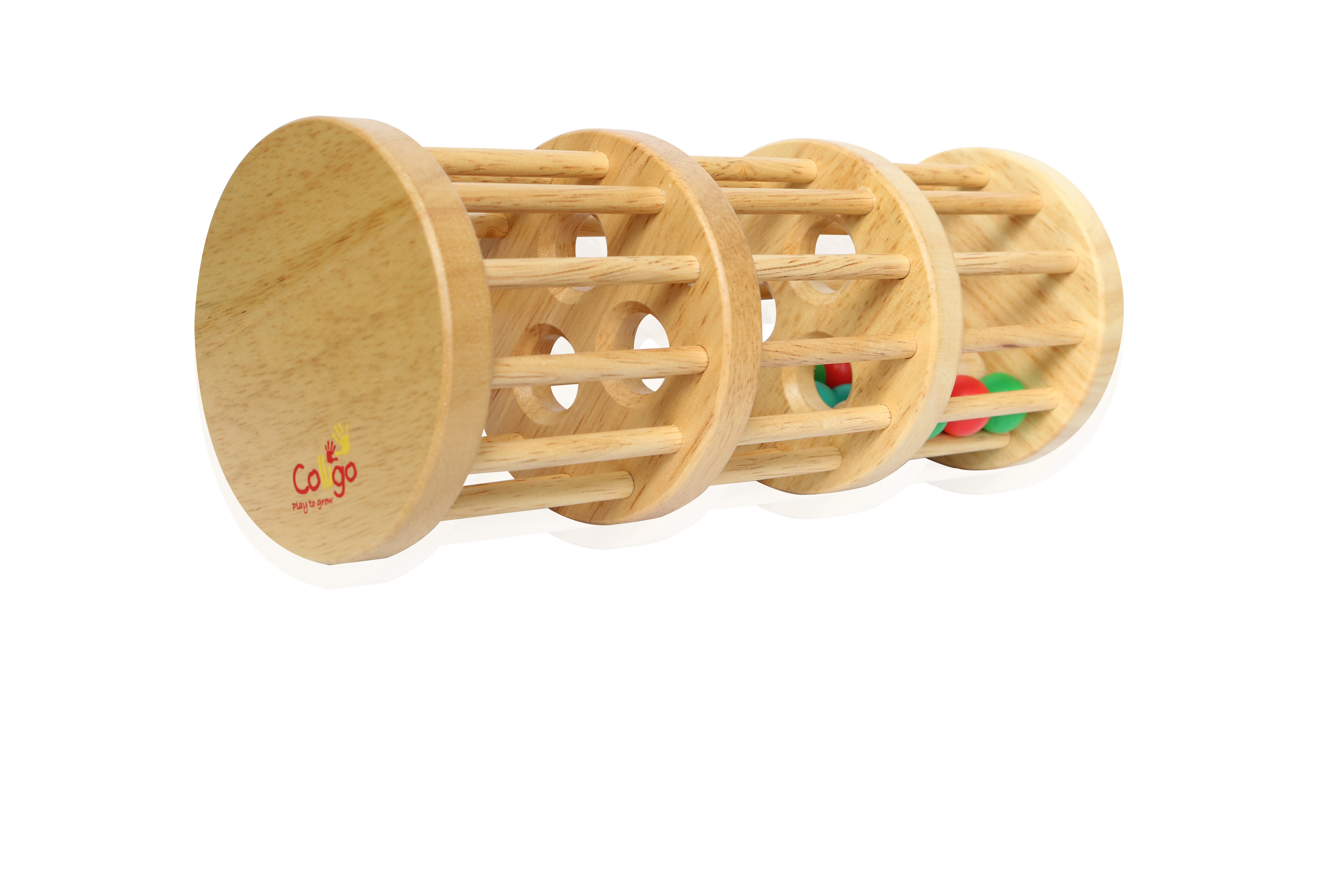 Hướng dẫn cách chơi: Bé dùng tay lắc thân trống để cho các viên bi nhỏ từ tầng trên cùng sẽ lọt qua 3 lỗ nhỏ của miếng gỗ ở từ tầng trên cùng xuống các tầng bên dưới để làm sao cho các viên bi này lọt xuống tầng dưới cùng một cách nhanh nhất. Sau đó bé có thể xoay ngược lại thân trống và tiếp tục chơi như lúc ban đầu.